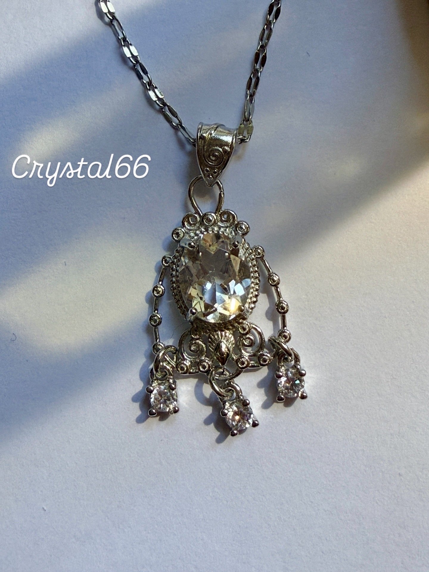 不鏽鋼項鍊搭配白水晶復古吊墜